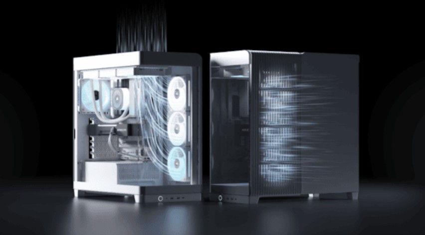 Podczas gdy górną i dolną część obudowy można dowolnie personalizować, boki obudowy FRAME 4500X wyposażono w 3 wentylatory wlotowe RS120-R PWM ARGB lub 3 wentylatory iCUE LINK LX120-R RGB z odwróconym wirnikiem. Te najwyższej jakości wentylatory dostarczają chłodne powietrze do obudowy, zapewniając skuteczne chłodzenie przy niskim poziomie hałasu, a dzięki konstrukcji z odwróconym wirnikiem oferują niezakłócone oświetlenie RGB. Wentylatory RS120-R można łączyć szeregowo, co ułatwia sterowanie wentylatorem płyty głównej i oświetleniem, natomiast wersja LX120-R zawiera wentylatory wykorzystujące technologię CORSAIR iCUE LINK umożliwiającą bezproblemowe sterowanie oświetleniem i prędkością wentylatora za pomocą jednego kabla. Obudowa FRAME 4500X obsługuje maksymalnie 10 wentylatorów 120 mm lub 5 wentylatorów 140 mm, co umożliwia montaż dodatkowych wentylatorów na górze, z tyłu i na dole obudowy, zapewniając stały przepływ powietrza w całej obudowie. Osłona zasilacza wyposażona jest w dwa 120-milimetrowe uchwyty na wentylatory zapewniające bezpośrednie chłodzenie procesora graficznego.