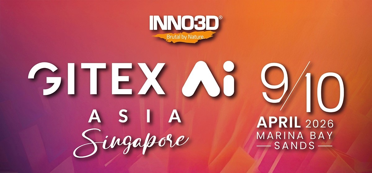 Zapraszamy wszystkich uczestników GITEX Asia 2026 do odwiedzenia stoiska INNO3D — HB-B112. Bądź na bieżąco: www.inno3d.com | @INNO3D w mediach społecznościowych.